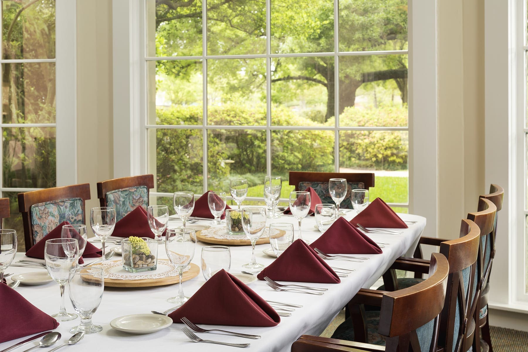 From our chapel to our apartments, we’re surrounded by beautiful landscapes and gardens, all in the heart of Houston. This sneak peek into our campus provides an opportunity to envision what life is like at Holly Hall. In our photo gallery and on our virtual tour, you’ll see some of our community’s most unique sections, including our library, physical therapy gym, dining rooms, and more.
